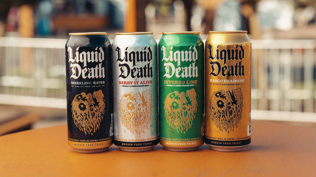 Liquid Death will not kill you. But make no mistake, our infinitely recyclable cans of premium low-calorie beverages will absolutely murder your thirst. And it doesn't stop there. After twerking on your thirst's grave, these ruthless cans will actually donate a portion of the proceeds to help kill plastic pollution. Beverages include: Mountain Water, Soda-Flavored Sparkling Water, and Iced Teas.